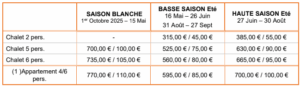 Locatifs – Tarifs à la semaine (7 jours) / nuit
